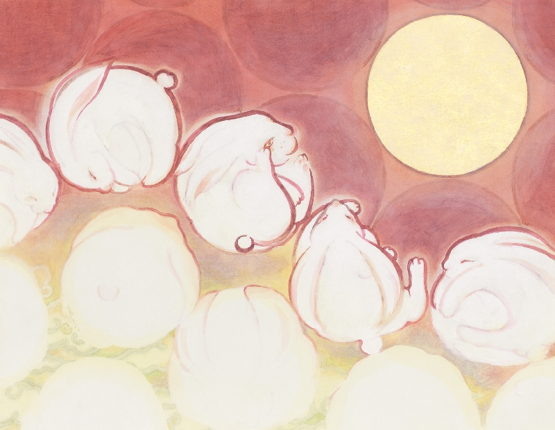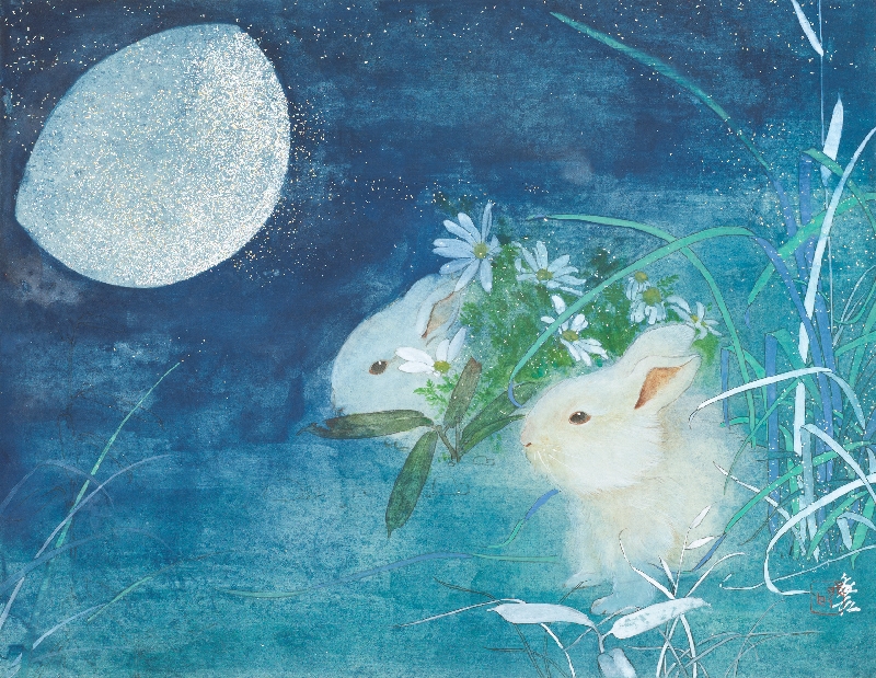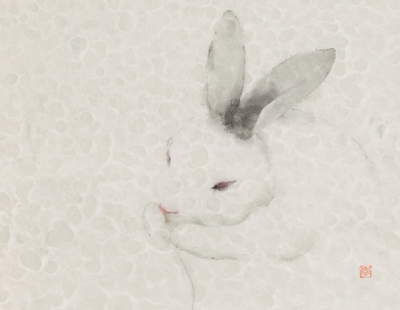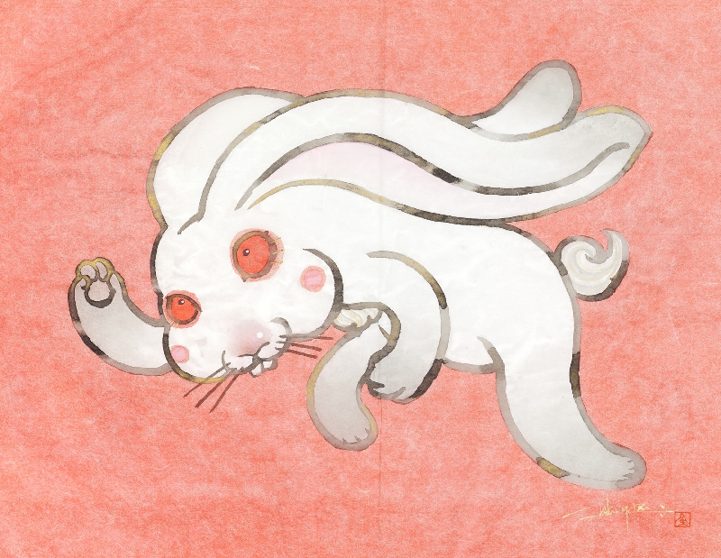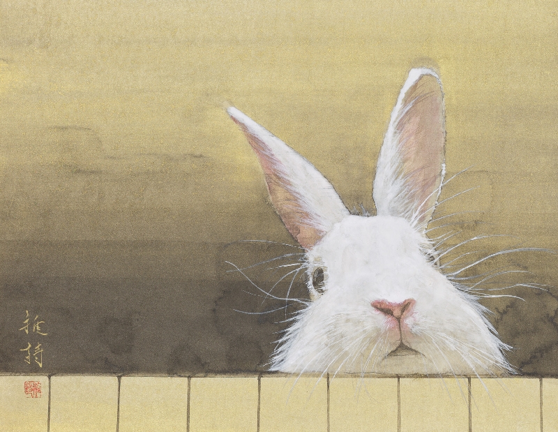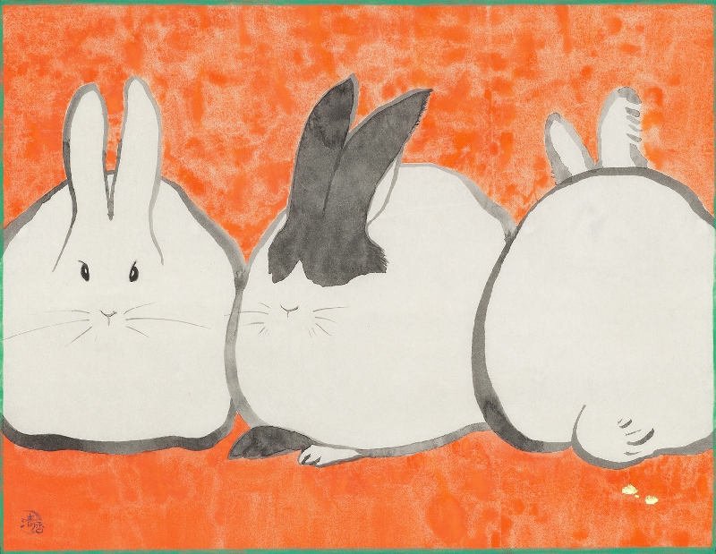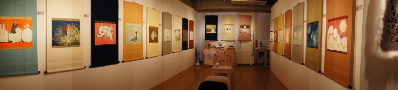 昨年に引き続き干支展を開催いたします。愛知県立芸術大学出身・大学院在学中の日本画家21名各々のスタイルでうさぎを描きました。今年はサイズも大きくなり表具仕立てにいたしました。カレンダー・各国うさぎグッズ販売もしております。
